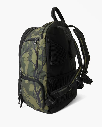 A travel essential, the Billabong A/Div Combat Pack Backpack combines function, utility and style into one solid package. Featuring an internal padded large main luggage compartment, a front sleeve stash pocket, multiple side pockets and a secret passport pocket at the back panel for quick and easy accessibility, this men’s backpack has got you covered. Adjustable padded shoulder straps add comfort throughout so you’re never weighed down, and an exterior bungee cord and daisy chain webbing loops add security and protection on the go. And an interior sunglass pocket, designed to keep your shades safe, adds a unique twist on this adventure staple.