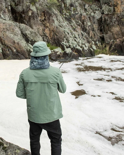 Sun protection and style collide in the Billabong A/Div Otis Big John Bucket Hat. This men’s unstructured bucket hat features a wide brim, storable neck flap for added coverage, mesh lined interior and adjustable chin strap for a breathable, comfortable fit throughout. Made from recycled polyester ripstop blended fabric, this Adventure Division staple is topped with a collection arch rubber patch at the front for a bold look.