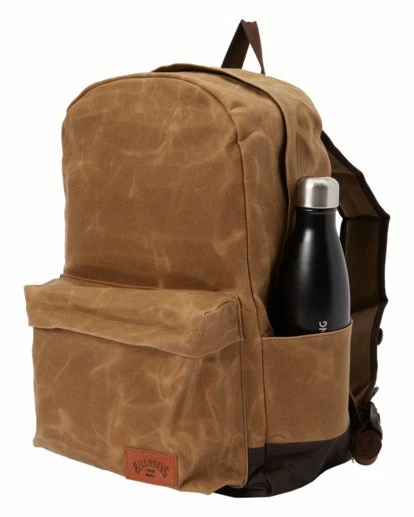 Feel confident on the go with the Billabong All Day Plus Backpack. Made from wax coated cotton twill fabric, this menโs backpack features a main zippered compartment, interior laptop sleeve, a front zippered exterior pocket and side water bottle pocket for all your needs. Designed with padded shoulder straps and a top pull handle for a versatile wear, this carry all day pack also features a reinforced padded bottom panel for added protection throughout. Holds 16 liters.