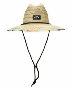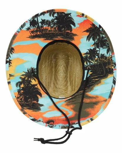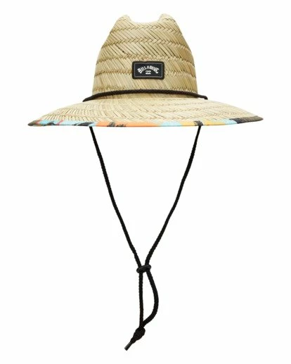 Escape the sun in the Tides Print Hat, a straw lifeguard style hat with print fabric under the brim and edge binding for comfort, and an adjustable cord chin strap. Finished with a woven patch detail on the center front crown.