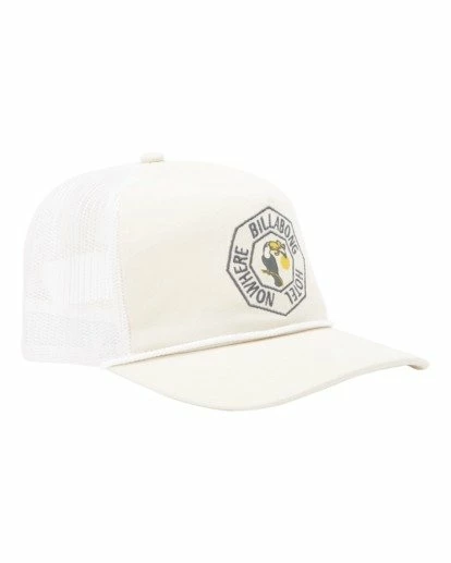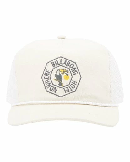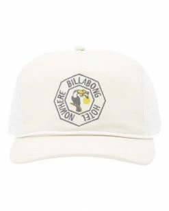 Protection from the elements never looked this good. The Billabong Vacay Trucker Hat is made from cotton twill blended fabric with polyester mesh side and back panels for a breathable, comfortable fit. Featuring 5-panel construction and an unstructured fit, this men’s trucker hat is built with an adjustable snapback closure and demi curved brim to keep you covered, no matter what. Topped with rope details on the front brim, an embroidered patch at the center front panel and a woven flag label at the back.